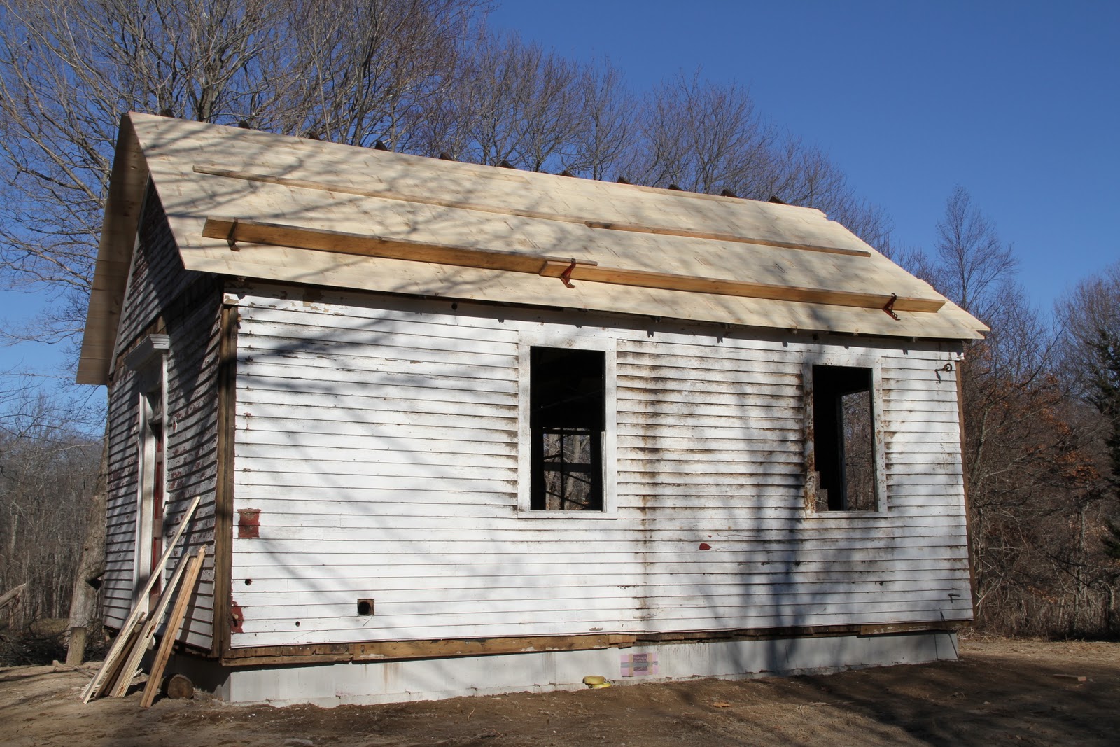 We ventured over to Parmelee Farm on this coooooold afternoon (I asked for this, didn’t I – just hush) to see the progress on the old Pine Orchard School house reconstruction. The school house was given to the farm by a generous resident and the Historical Society paid to have it moved to it’s current site, where it is in the process of being rebuilt. Originally constructed in 1853 by W. E. Dickinson, Pine Orchard was one of several one-room school houses in the area, operating with approx. 15 students per school until 1948, when all were deemed economically unsound and were closed and sold as private property.