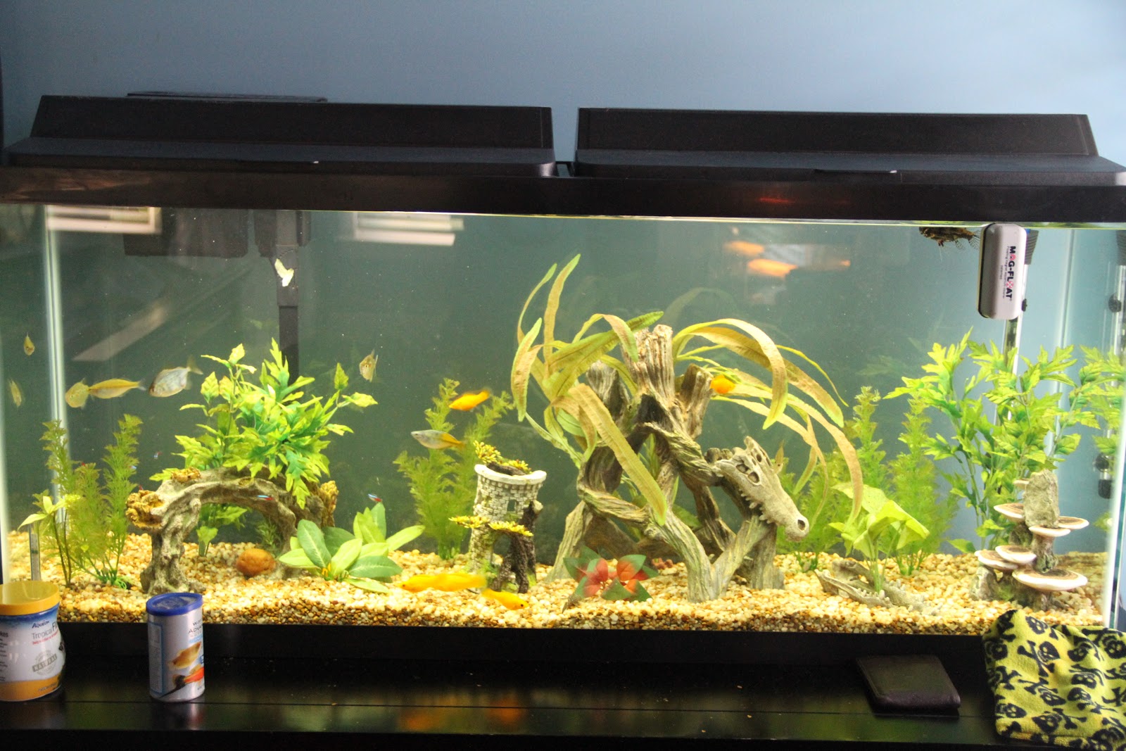 So, we started with Goldie. Then Goldie needed a tank and a friend. Then Goldie & Company needed a bigger tank. And then a bigger one. Goldfish are cool, but they’re kinda boring according to the kid. And so another, larger tank was assembled…. a semi aggressive tropical community tank.