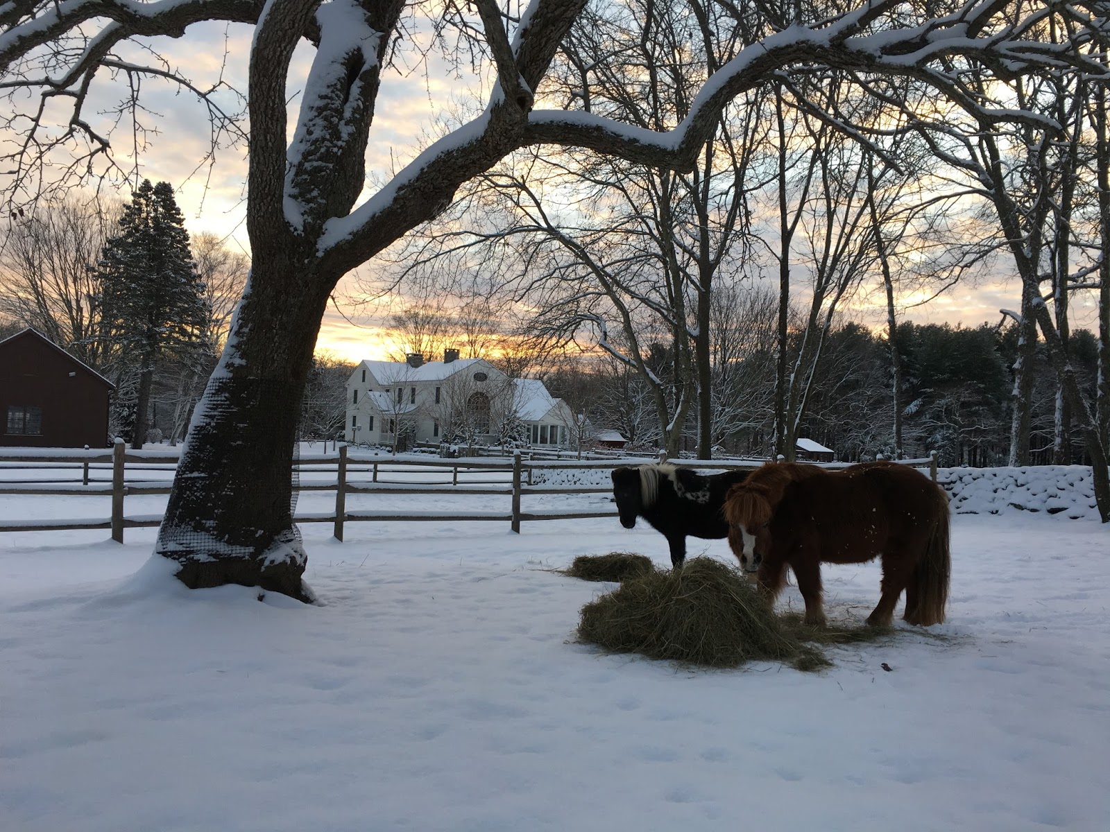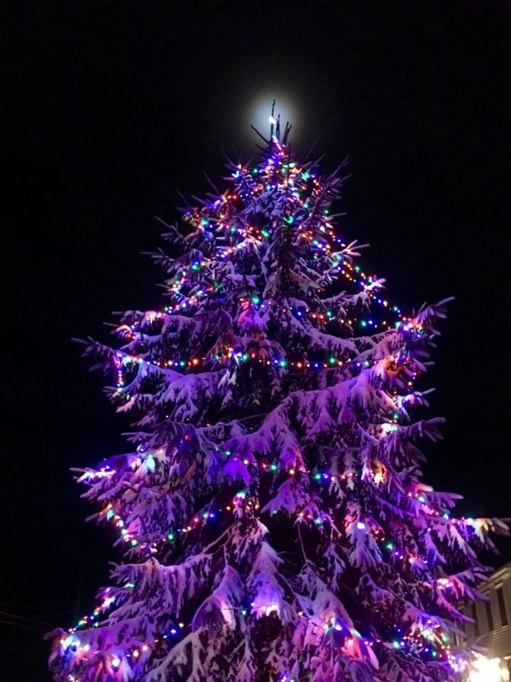 First Snow Early this morning as I set out to feed the animals… I took this photo with my phone … The moon as the tree topper. Till soon, friends –