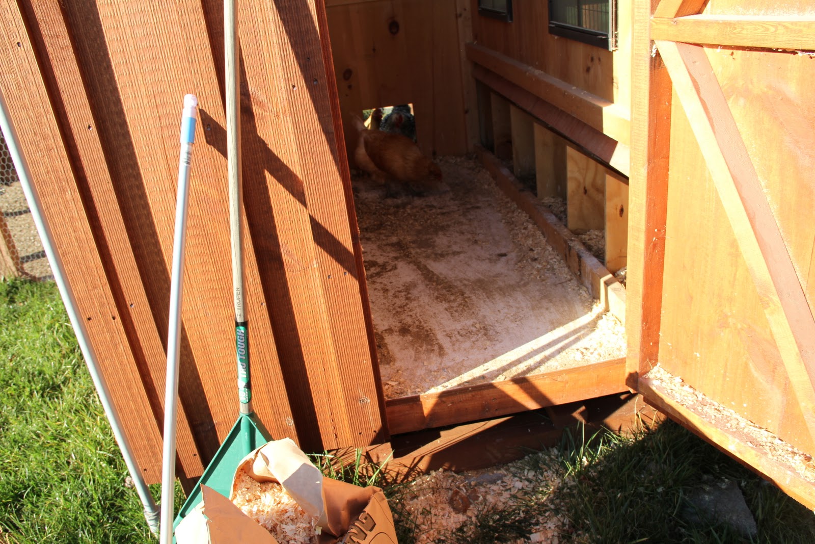 I haven’t finished mucking out their coop yet and they’re inside inspecting.