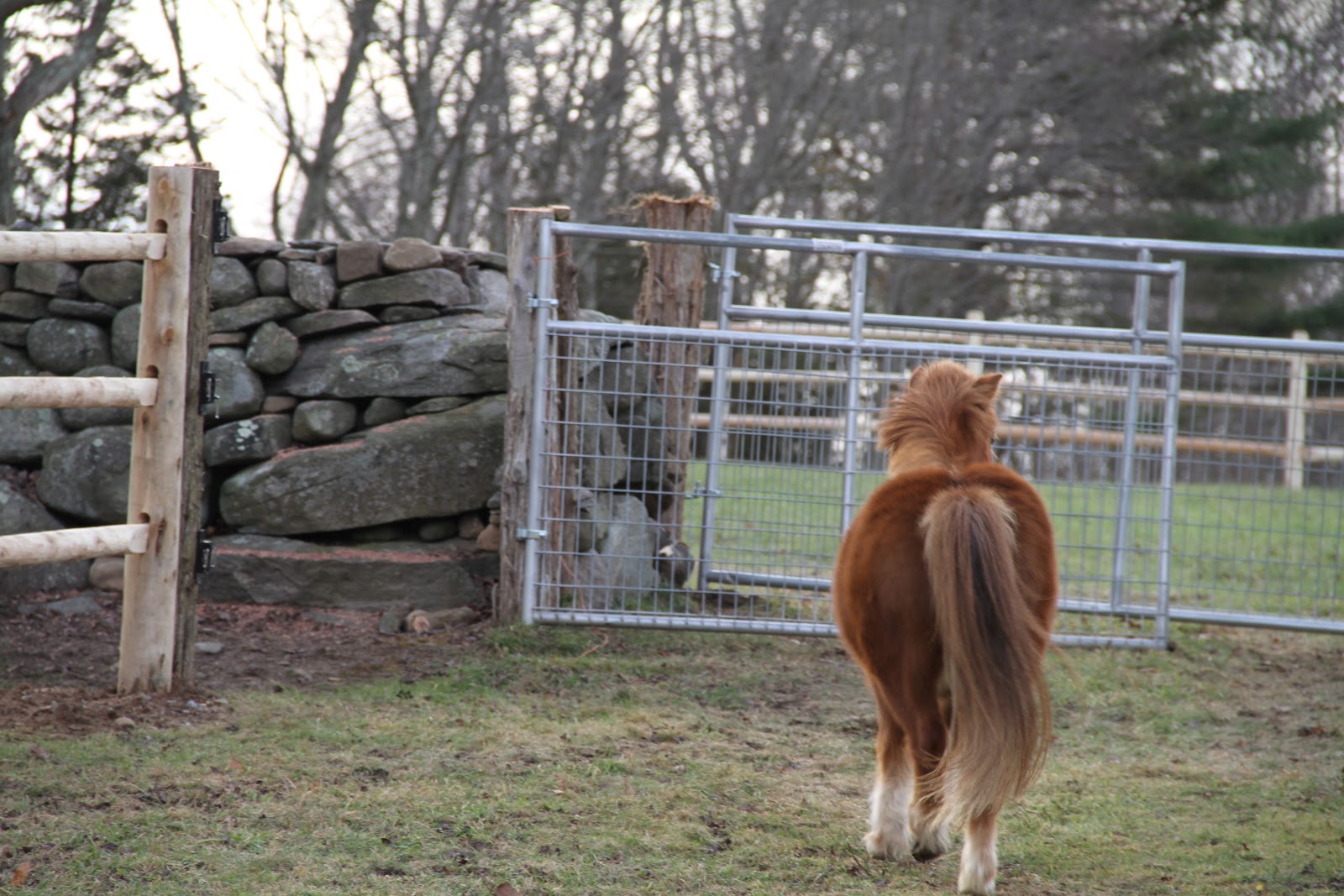 LOL, dog,horse and chicken whisperer. And those minis. how they act, separation anxiety, thats hilarious. But those poor guys looking longingly at the big guys chowing down, awwww.
