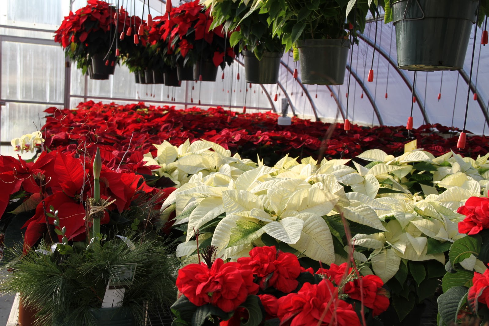 I could just smell the greens in the greenhouse and all the beautiful poinsetta.