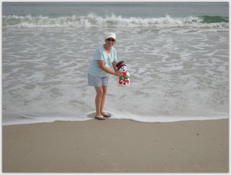“Our little snowman’s first trip to the Ocean! Canaveral National Seashore”