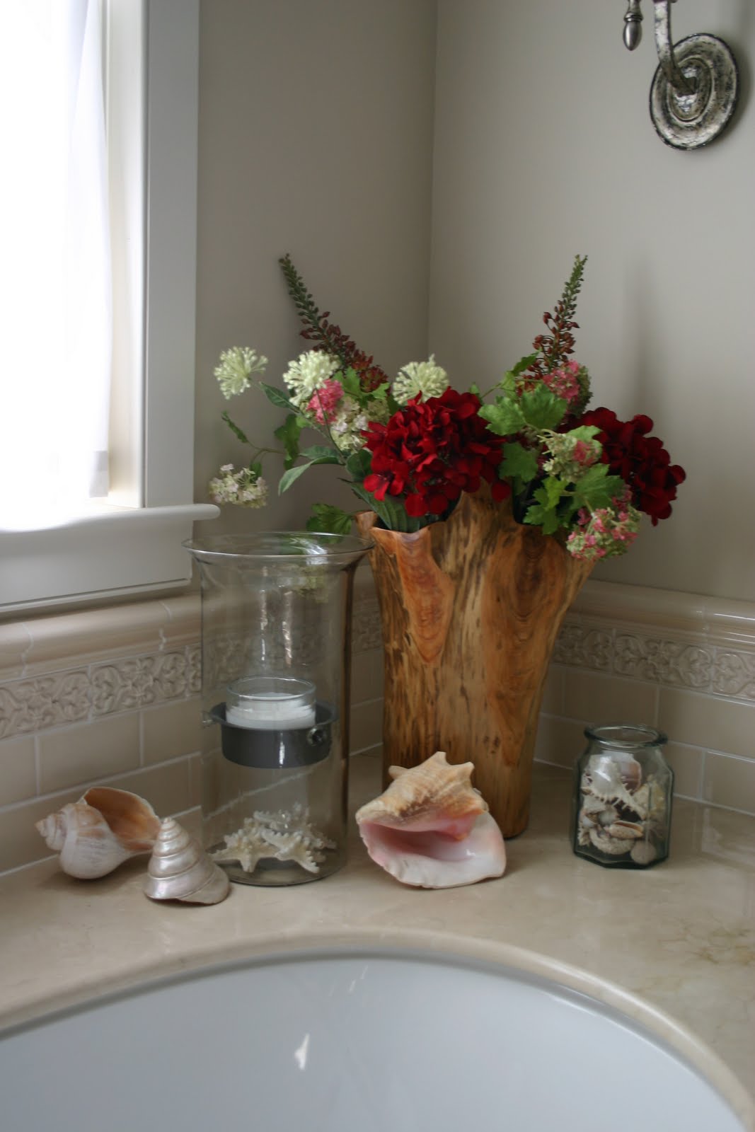 I’m trying to figure out what would look good on either side of the photo above the headboard. It’s a matted picture I photoshopped into a watercolor of one of our old cats lying under a barrel filled with geraniums.