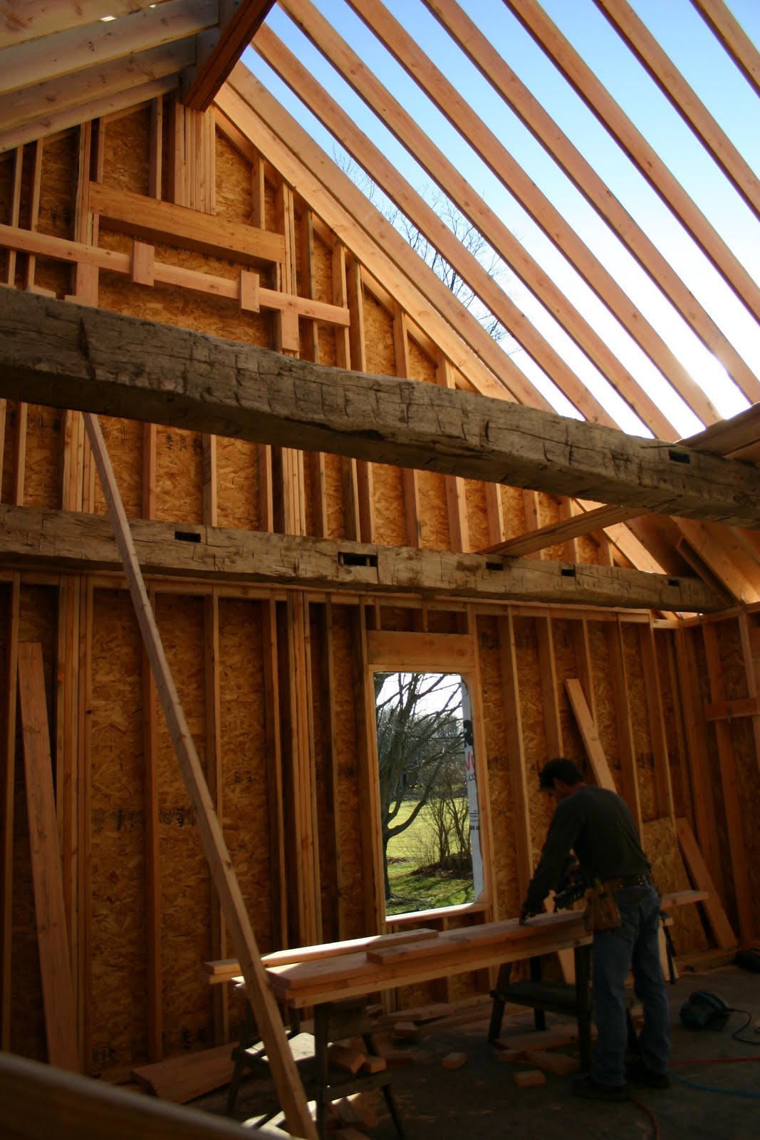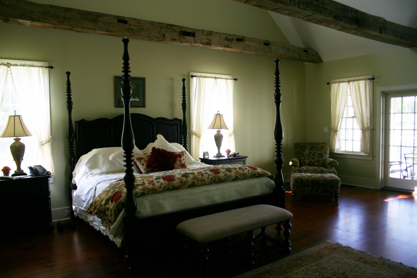 This bedroom is the new kid on the block, not part of an old structure, but we incorporated post and beam construction and those large beams you see in the ceiling are from an old Pennsylvania barn. They are beautiful, one of my favorite features of the house. They’re also infested with bugs! Actually, ALL the beams in the house have microscopic bugs. I had no idea. Apparently it comes with the territory, centuries old beams & bugs.