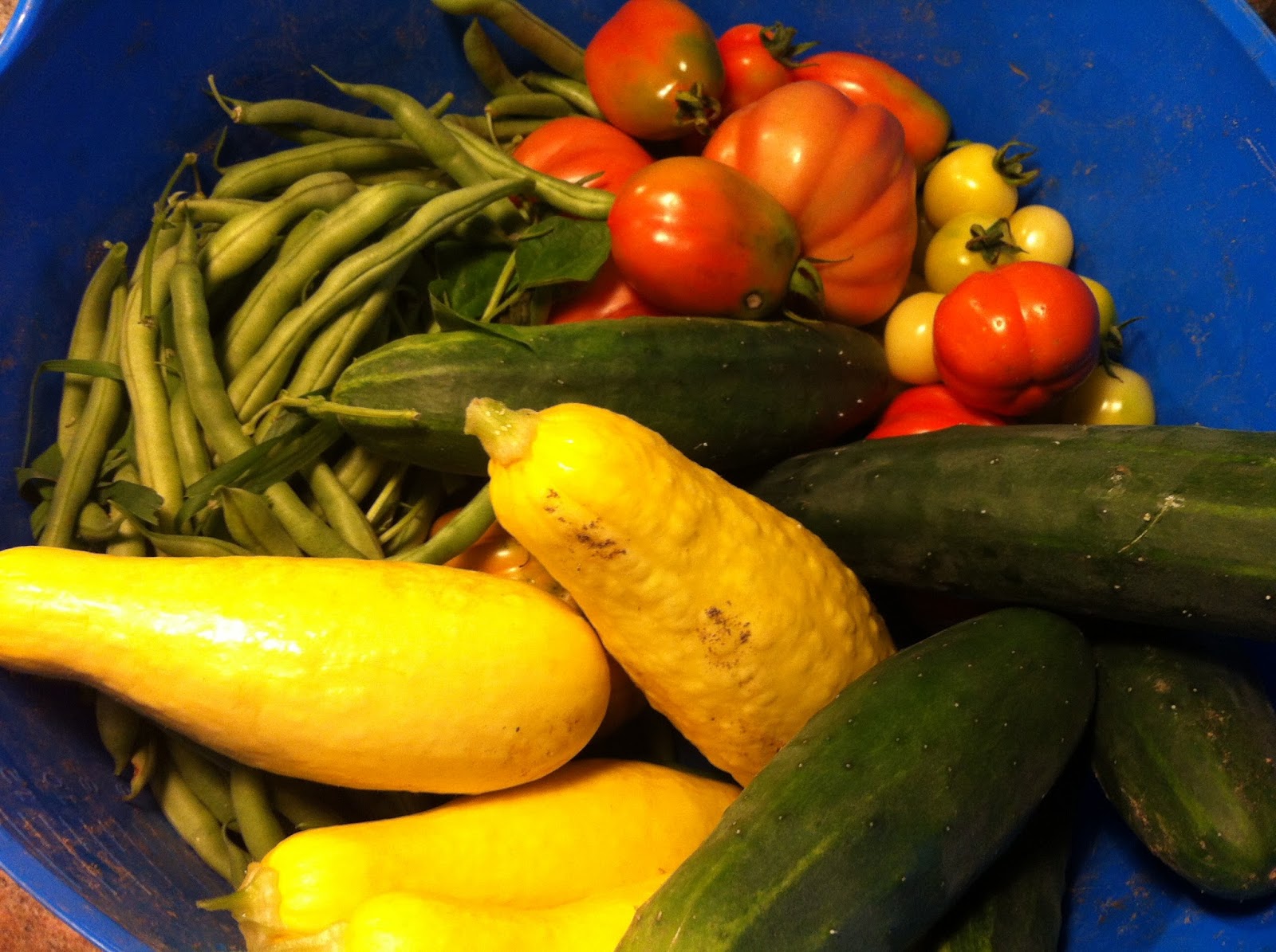So, what have we learned this year in the garden? Apparently, Tomatoes, cucumbers and Squash absolutely LOVE the tropical heat, humidity and rain fall we’ve had in the month of July. Holy cow, the plants and vegetables are HUGE.