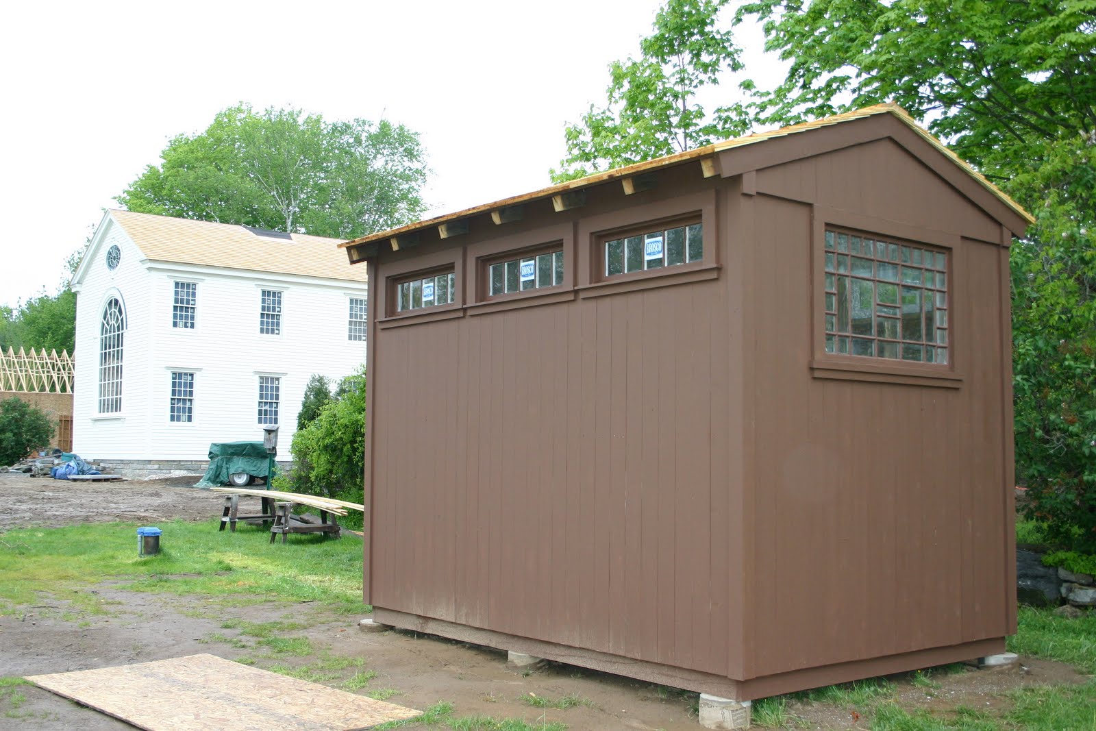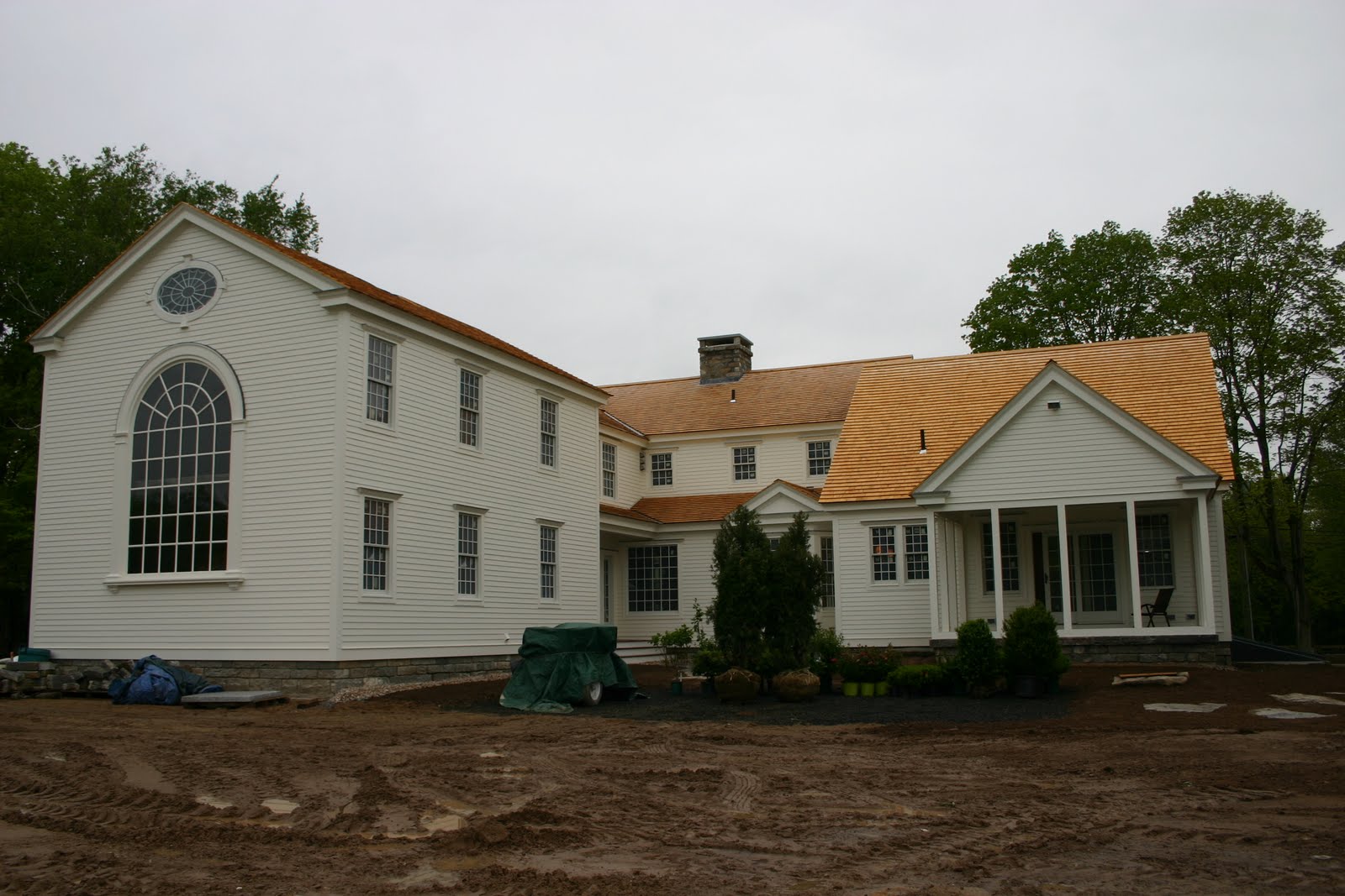 At this stage of the resurrection there’s a lot of activitiy and we’re rounding the bend towards moving in! Light fixtures and lamp posts have been installed, as well as railing on the mudroom porch. Can a great dane jump over said railing? That remains to be seen, and I sure hope not.