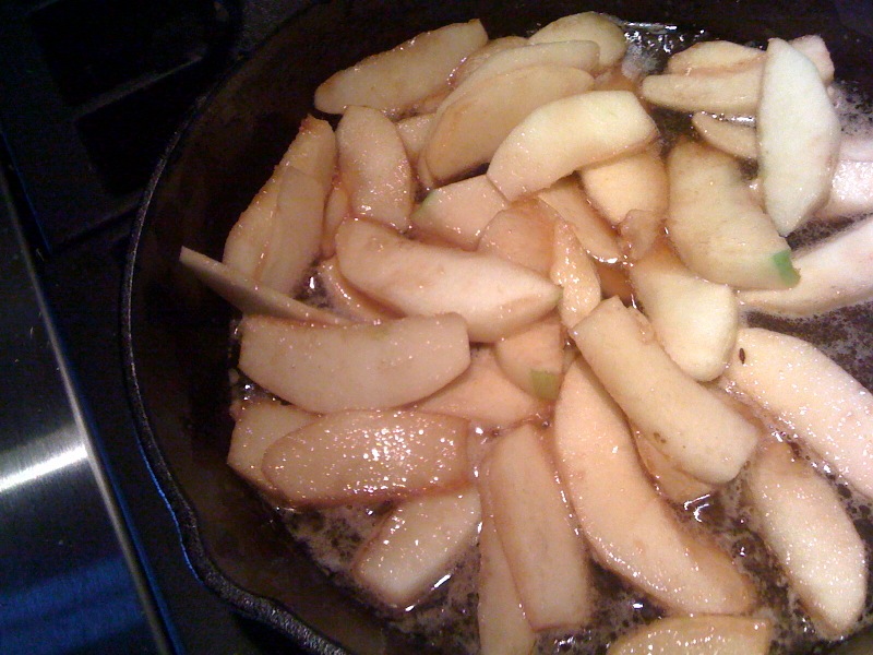 Add apple slices to the pan and reduce heat to medium-low. Cook for about 10 minutes or until tender. Let cool 5 minutes.