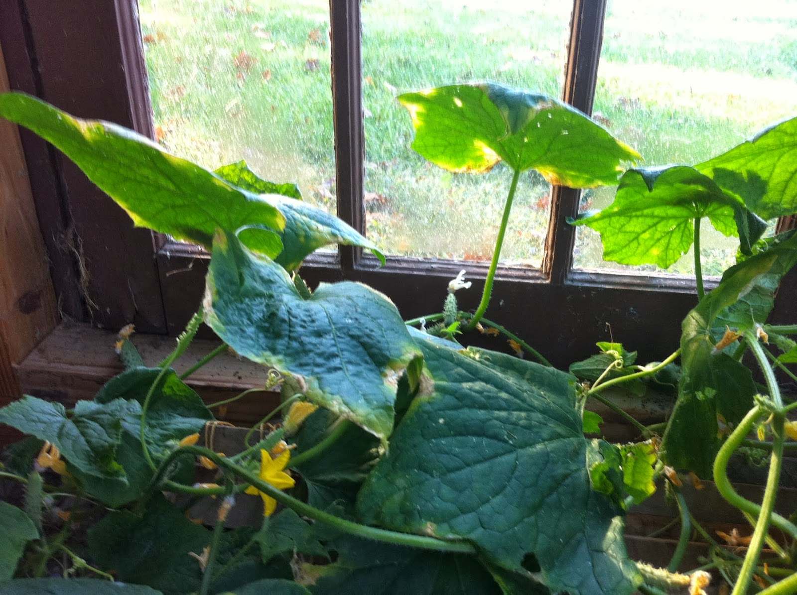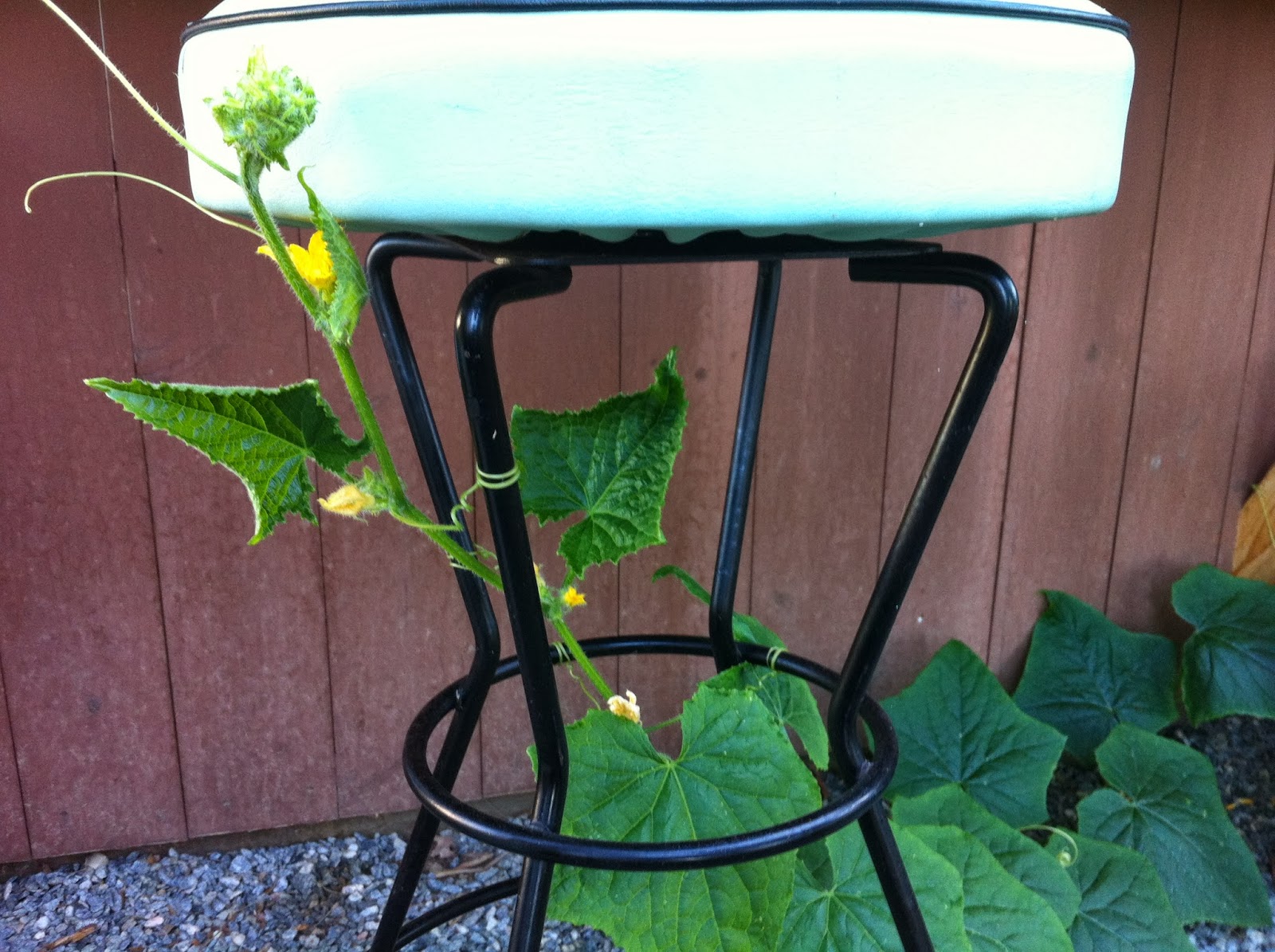 I guess from an errant seed in the spring…and grew the most beautiful cucumbers.