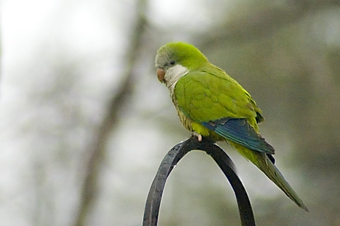 On Christmas Eve we had our first ever Monk Parrot visit. A pair of them were perched in the white birch outside the kitchen window, eye-ing the birdfeeder. As far as I know, they never came down to eat. It’s an odd thing, to see green tropical birds living in the cold weather of New England…
