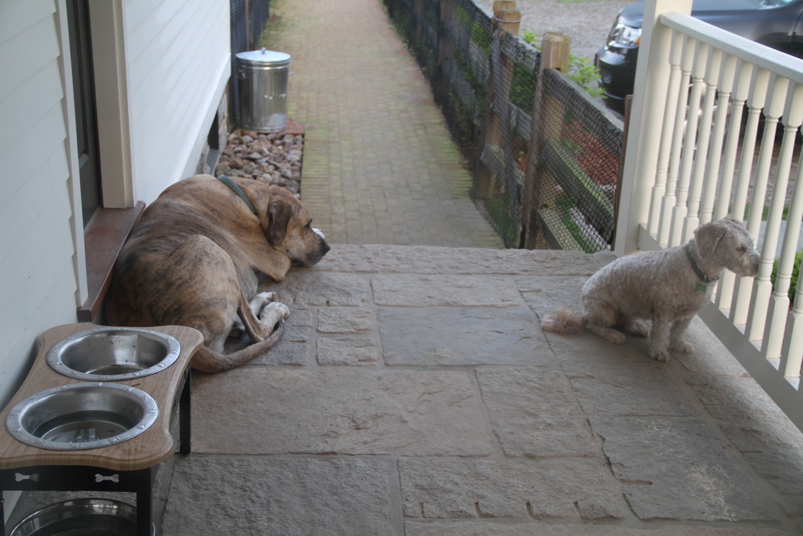 so they have a fenced yard down the steps??? I love this picture.